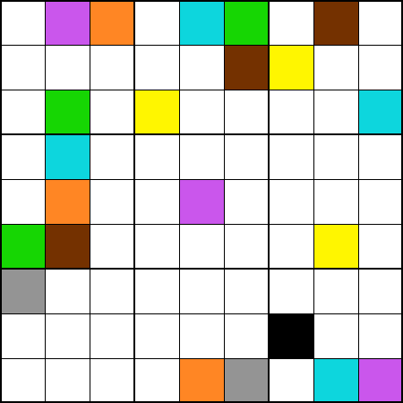 | Yellow 3 | Purple 6 | Black 9 |